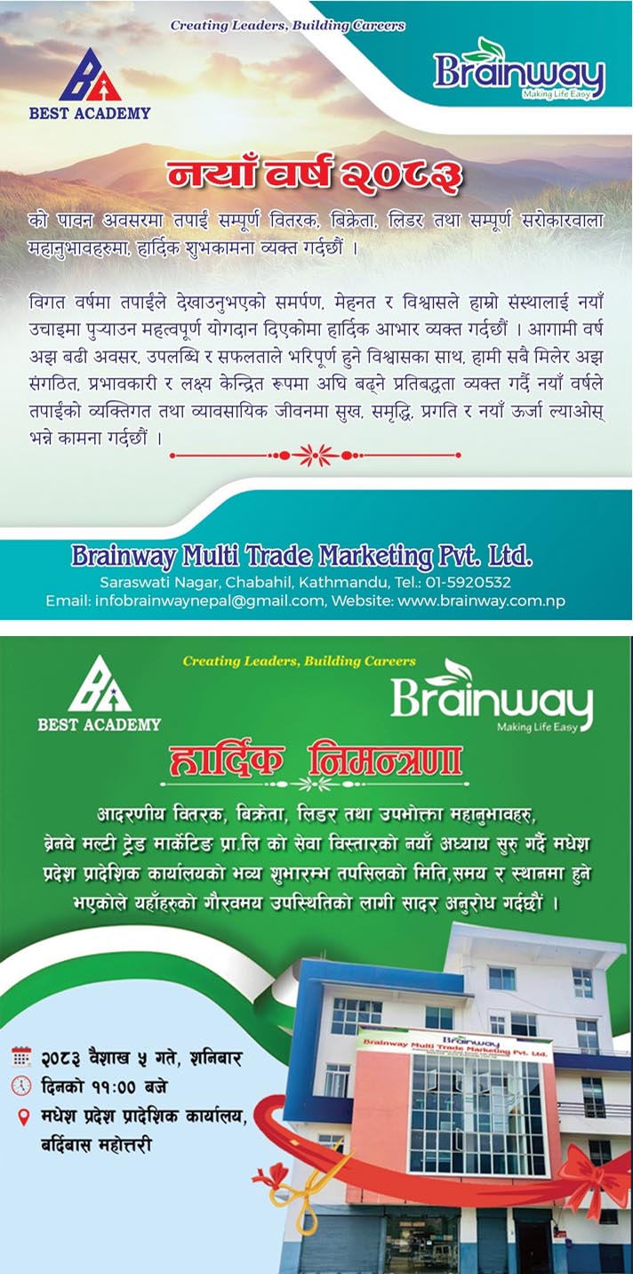 Our executive management and board of directors are passionate leaders who inspire us to live our best lives every day. With their diverse expertise and forward-thinking approach, they empower Brainway Independent Distributors and employees to achieve our vision of becoming the Nepal premier health and wellness company and community.